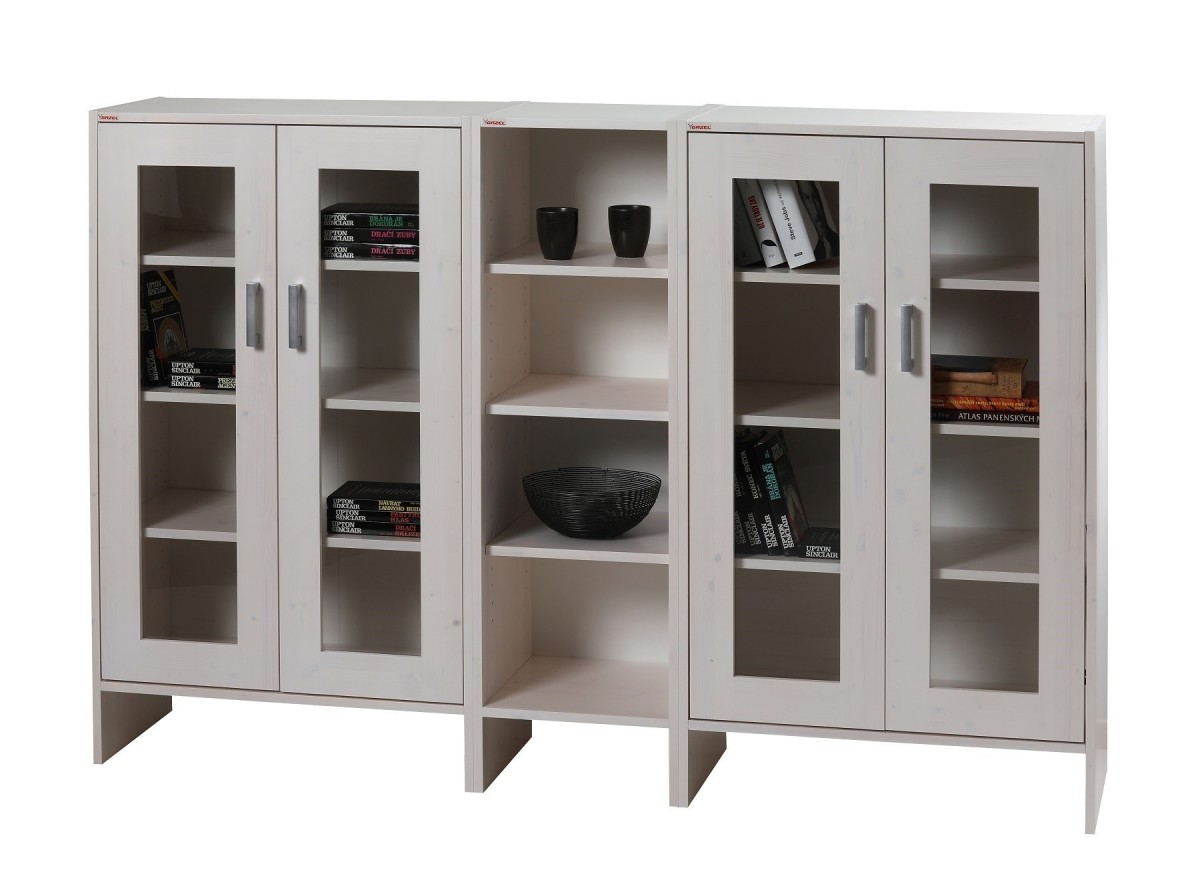 Komoda Beta prosklená bílá se skládá z Bety policové bílé a dvířek prosklených bílých.