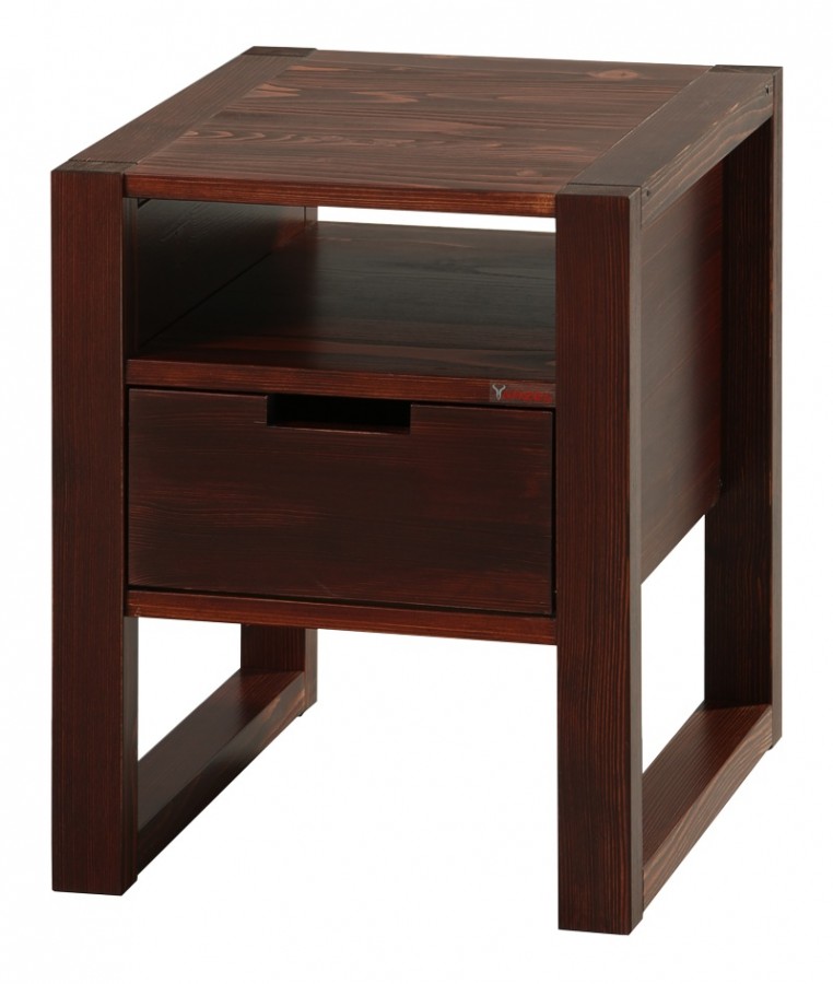 Dřevěný noční stolek v tmavě hnědém provedení je vhodným doplňkem k postelím Rhino I. a Rhino II.