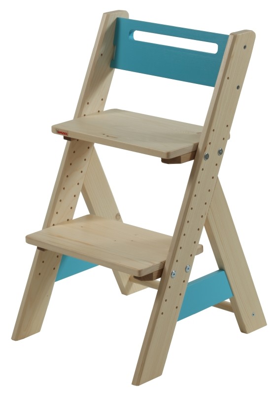 Díky tomu mohou i ty nejmenší děti pohodlně sedět u standardně vysokého stolu.