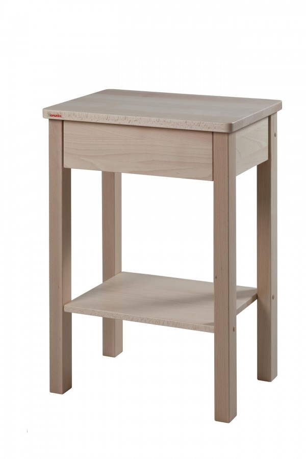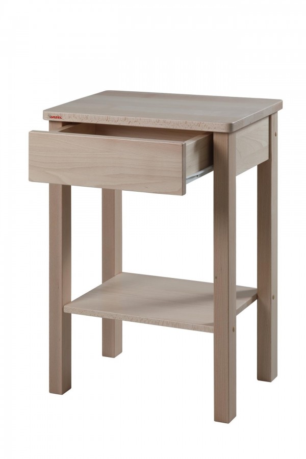 Dřevěný noční stolek v bukovém provedení je vhodným doplňkem k postelím Theo Buk.