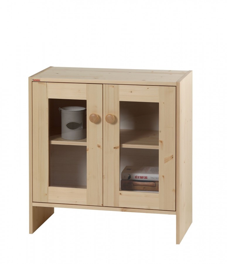 Komoda z masivu s prosklenými dvířky
