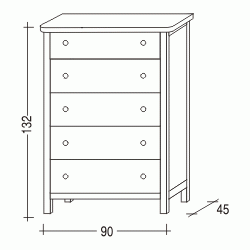 Komoda velká s pěti zásuvkami, rozměr: 90x45x132 cm.