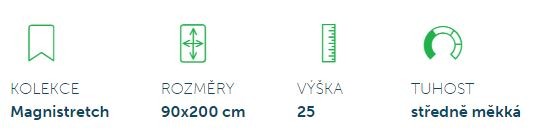 Matrace Magnistretch 10 je sestavena z kombinace vysoce kvalitních studených pěn a prodyšného viskózového potahu s prošitou vrstvou paměťové pěny. Tato matrace pozitivně napomáhá při zdravotních problémech s páteří a se zádovým svalstvem (například při sesedání páteře, bolestech krční a bederní páteře apod.). V průběhu spánku jemně natahuje páteř do původní polohy bez ohledu na spánkovou polohu a tím umožňuje regeneraci jednotlivých obratlů a zádového svalstva.