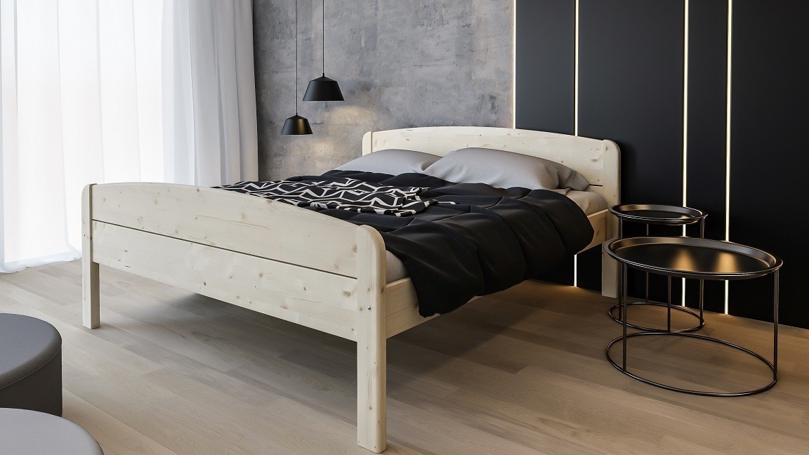 Pevná a bytelná manželská postel v přírodním provedení, je vyrobena ze smrkového masivu české provenience.