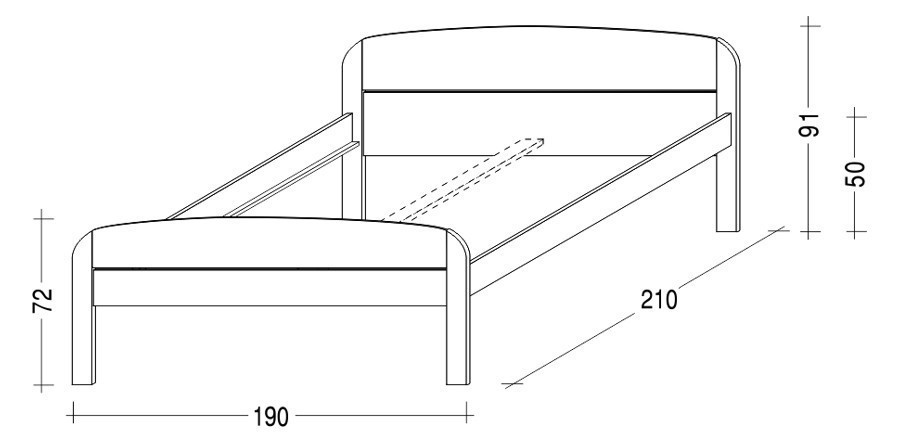 Na objednávku je možno za příplatek vyrobit postel v prodloužené délce.