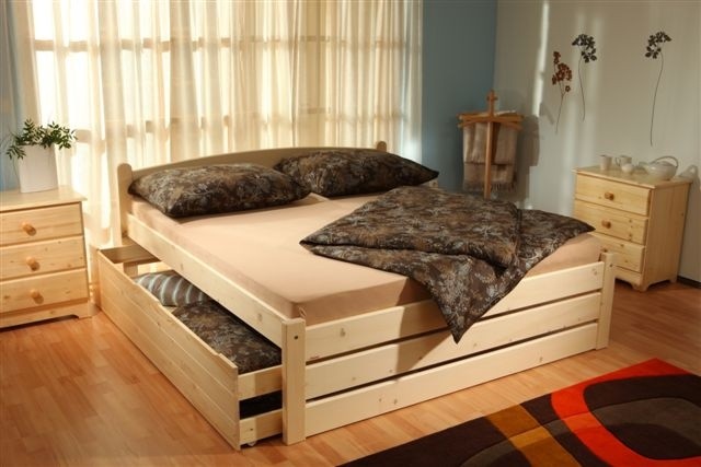 Pevná a bytelná manželská postel v přírodním provedení, je vyrobena ze smrkového masivu české provenience.
