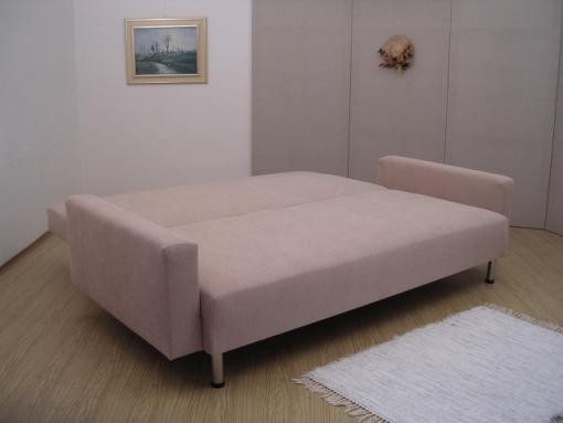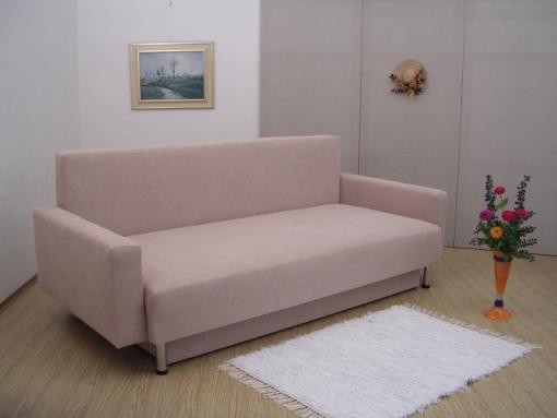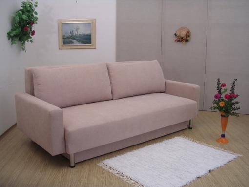 Celočalouněná rozkládací pohovka s úložným prostorem a se dvěma polštáři. Pohovka je k dostání jak bez područek tak s područkama. Pohovka Lada má praktické a jednoduché rozkládání, velký úložný prostor. Lehací plocha se vytvoří odtažením sedadlové části a následným překlopením opěradla.