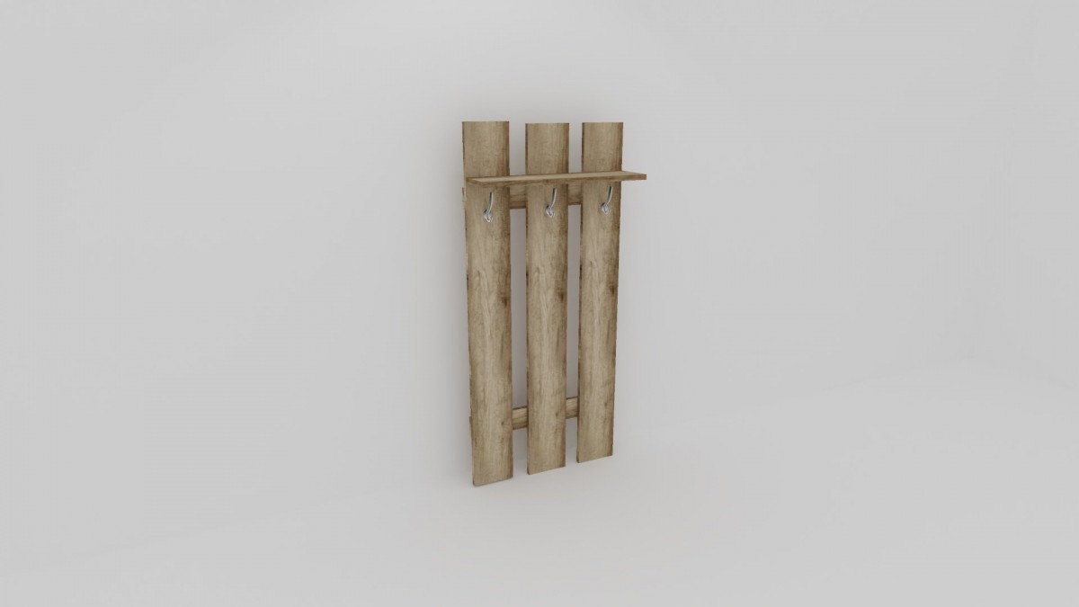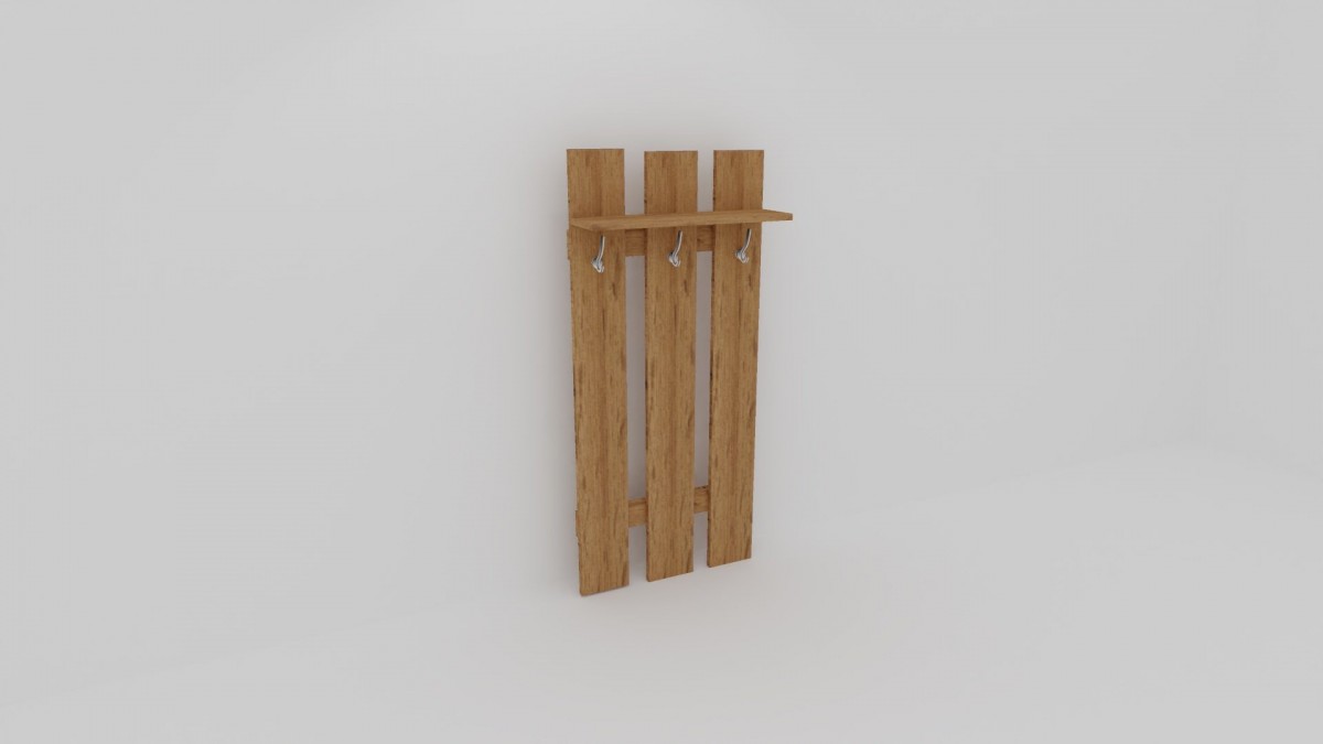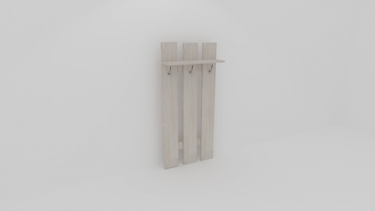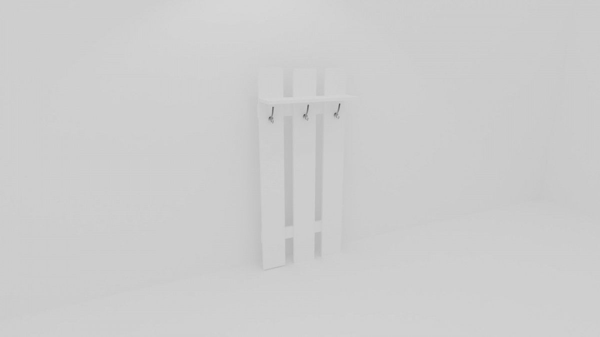 Trojvěšák využívá prázdného místa přímo ve středu tohoto kompletu. Police, která je součástí, může posloužit jako další odkládací plocha.